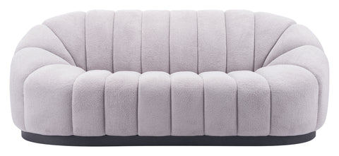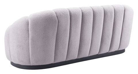 The Bhutan Sofa has a polyester shearling style fabric. This sofa works great in any space, whether it is hospitality or residential. The shape and design are glam, modern, deco, and boho all at the same time. Features: Assembly not required, Seats up to 3, Shearling style fabric, Armrest support, Powder coated steel, polypropylene leg, Rubber feet help prevent floor scratches, Supports up to 440 lb. Dimensions: 84.6" W x 37.4" D x 32.7" H. Weight: 101,2 lbs.